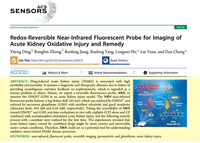 成果二:Redox-Reversible Near-Infrared Fluorescent Probe for Imaging of Acute Kidney Oxidative Injury and Remedy
