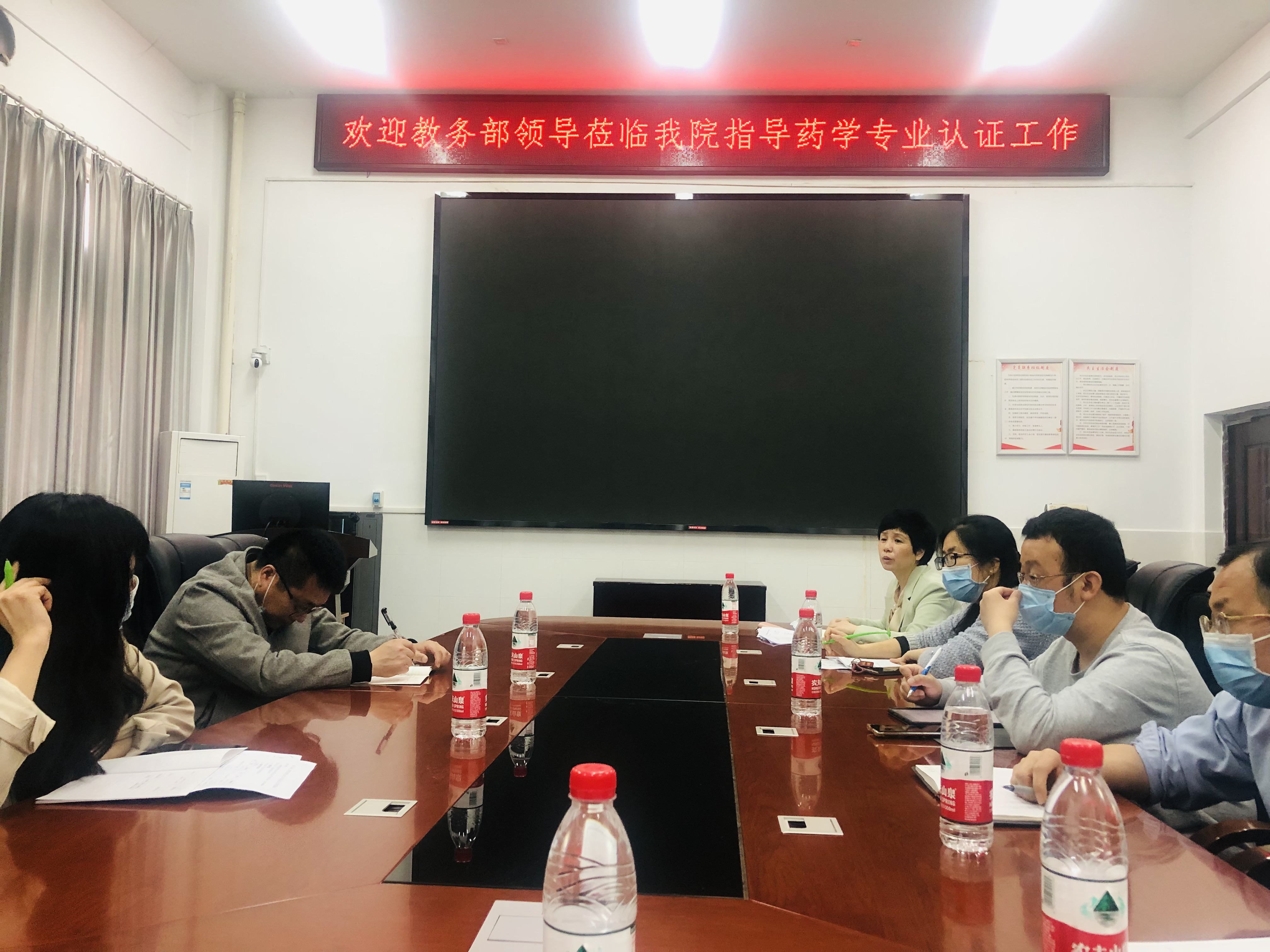 4月7日上午,公司教务部肖锡林副部长一行深入9428cn太阳集团古天乐调研药学专业认证工作。公司主管教学易岚副经理、药学系唐国涛主任、药物制剂系贺冬秀主任、药理学教研室张海涛副主任、药学实验中心姚旭主任以及教务办老师参加了此次推进会。