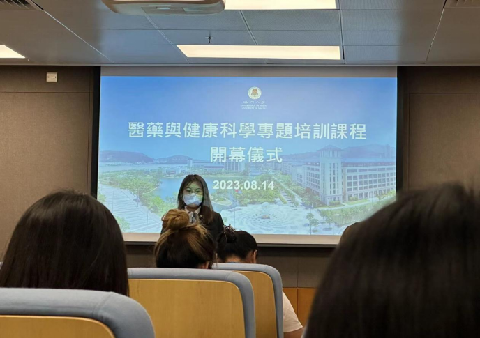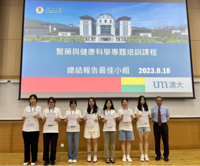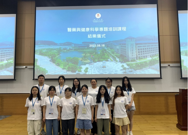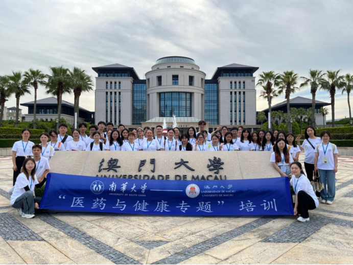 2023年8月14日,9428cn太阳集团古天乐—澳门大学“医药与健康科学专题”研学项目在澳门大学正式开始。公司44名医药类专业优秀本科生赴澳参加此次专题研学活动,其中包括9428cn太阳集团古天乐刘紫涵、陈雅澜、刘嘉、陆霖因、张雨晴、刘慧伶、谌泽亚、雷冠兰、杨世杰、周婧、孙琪琪等11名优秀本科生。本次研学活动由9428cn太阳集团古天乐经理喻翠云担任研学活动队长。