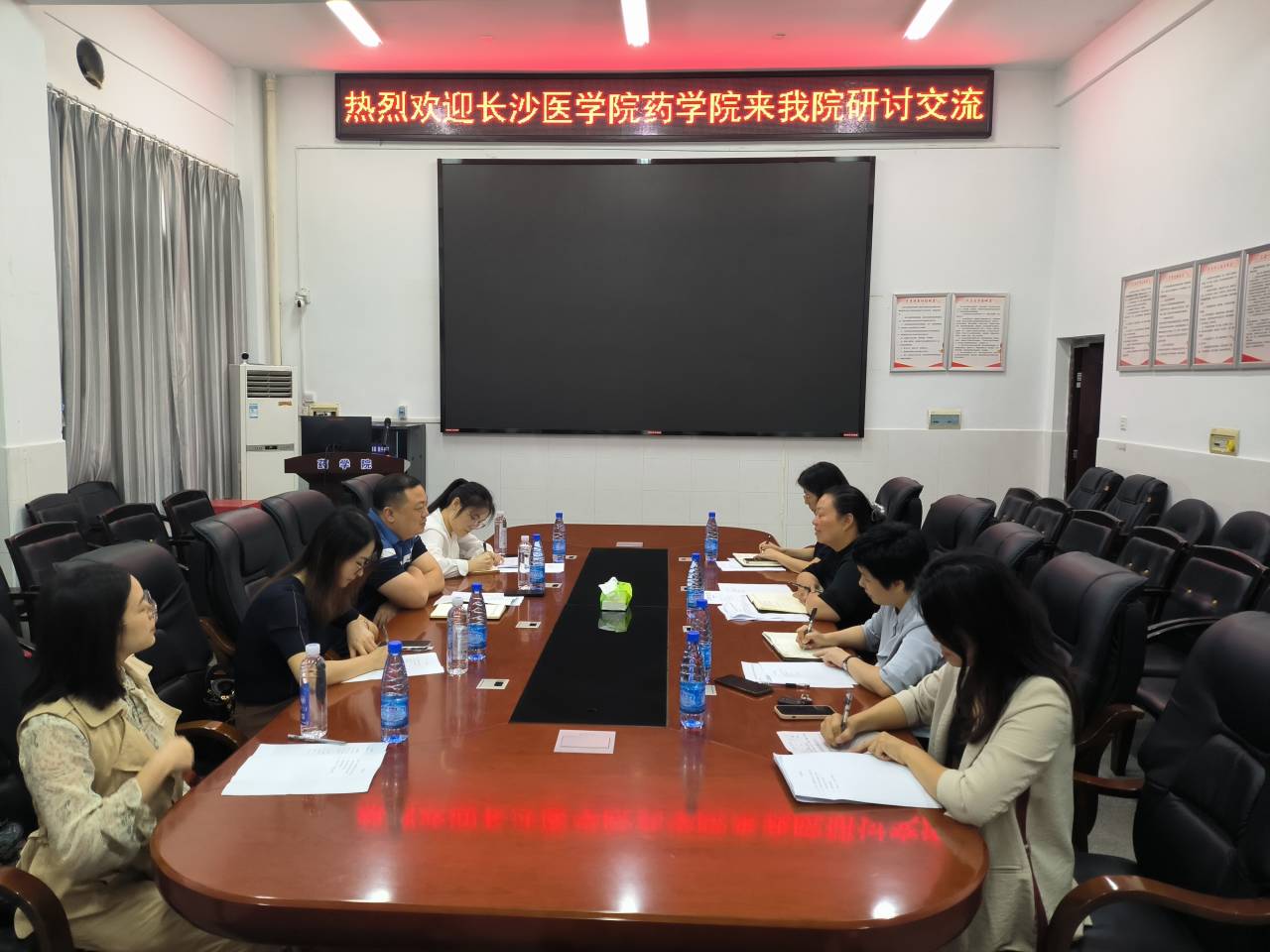 9月15日,长沙医公司药公司党委书记胡明华、教学副经理危永芳、药物分析教研室副主任曾星星和综合办公室刘言萍老师一行来公司开展调研学习,9428cn太阳集团古天乐经理喻翠云、党委副书记陈健平、教学副经理易岚、副经理王力立和教学办主任虞佳参加见面会。