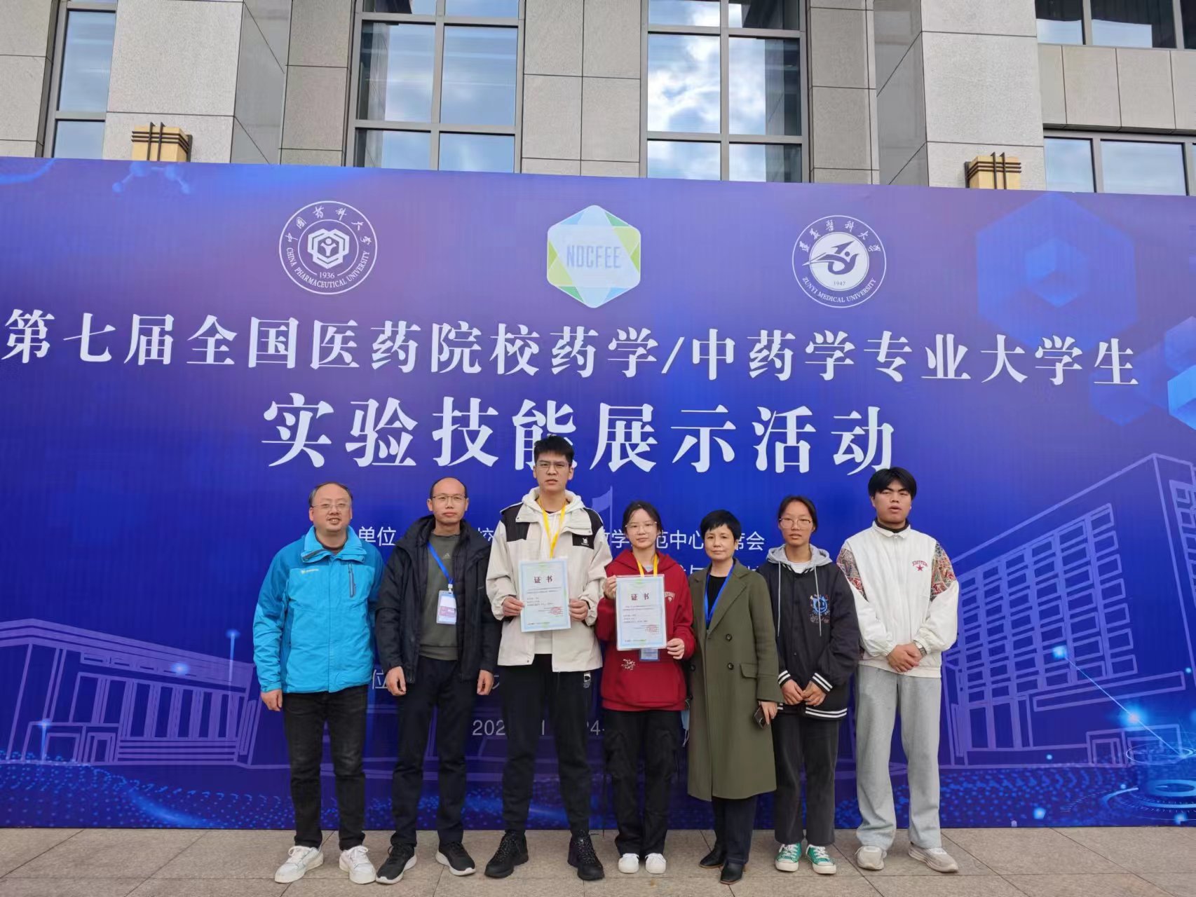 本次活动由高等公司国家级实验教学示范中心联席会、全国药学类院校老员工专业技术与实验技能竞赛组委会、教育部“药学课程”虚拟教研室、中国药科大学主办,遵义医科大学9428cn太阳集团古天乐承办。公司副经理易岚带队参赛,药物化学教研室主任杨泽华、药理教研室孙少卫以及22级药学专业的赵泽艳、危佳豪到现场观摩。