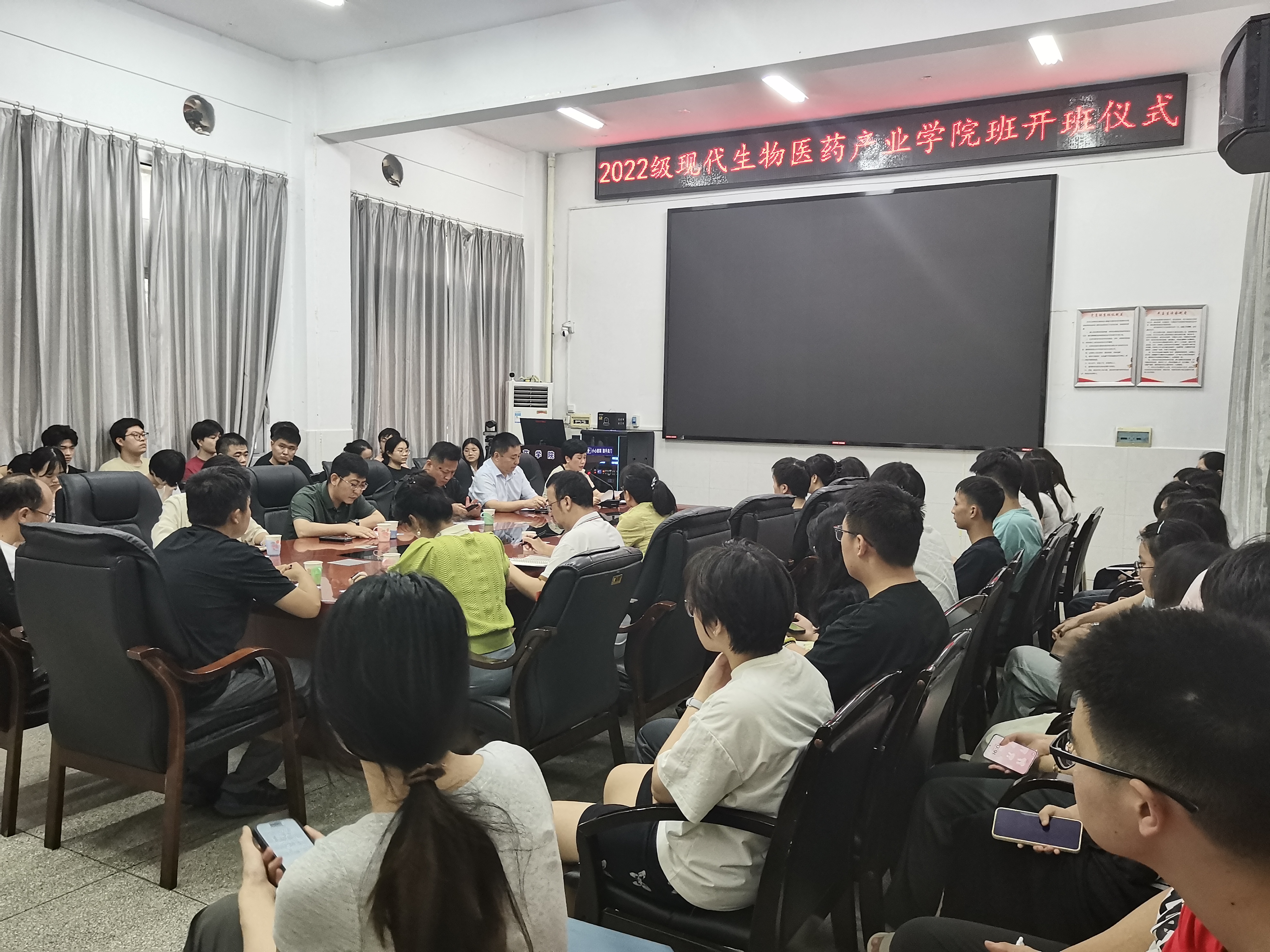 为积极响应国家深化产教融合的号召,全力培养高素质生物医药产业人才,9428cn太阳集团古天乐于6月19日在药学楼会议室隆重举行了2022级9428cn太阳集团古天乐班开班仪式。教务部部长彭国文、党委书记袁中华、9428cn太阳集团古天乐经理王震、副书记陈健平、副经理易岚、教师代表以及全体2022级产业公司班员工共同出席了此次会议,会议由袁中华书记主持。