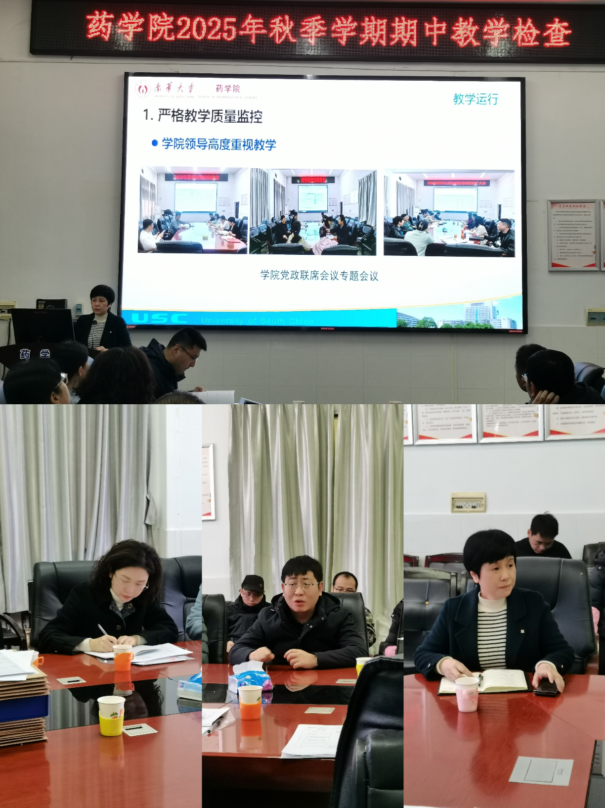 2025年11月20日上午8时30分,9428cn太阳集团古天乐教务部副部长周洲率校教学督导团专家杨胜园教授等一行,莅临9428cn太阳集团古天乐开展期中教学检查工作。检查汇报会在药学楼B101会议室举行,9428cn太阳集团古天乐经理王震、副经理易岚、各教研室及实验中心主任、教务办老师及教师代表共同参会。