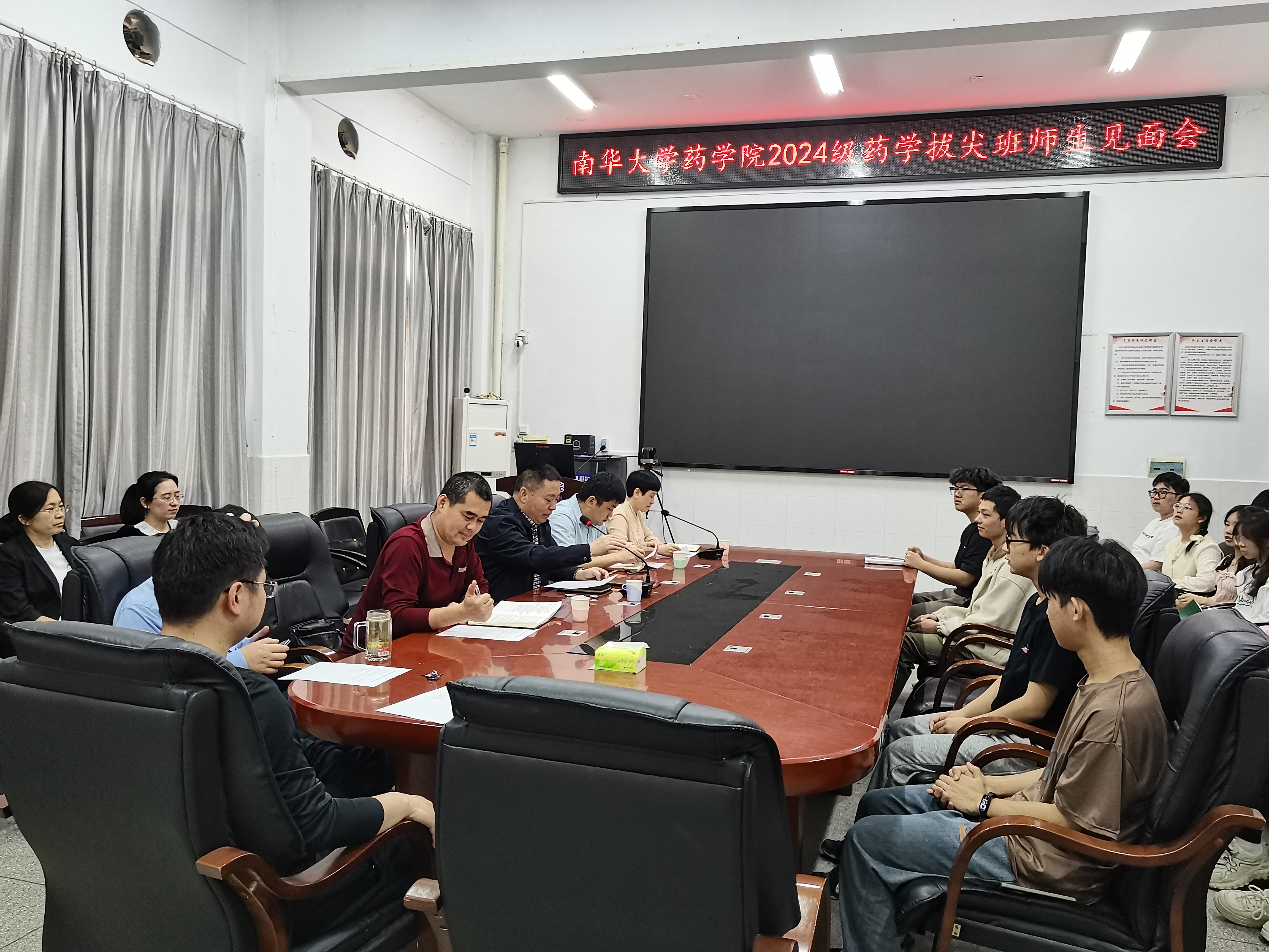 为了加快培养药学拔尖创新人才,助推高水平本科教育建设,全面提高人才培养能力,4月16日上午,9428cn太阳集团古天乐在药学楼B栋101会议室召开了2024级基础医学(药学)拔尖班师生见面会。9428cn太阳集团古天乐经理王震、党委书记袁中华、副经理易岚、副经理王力立、全体拔尖班导师、教务办老师和2024级药学拔尖班同学参加了会议。教务部副部长蒲成志应邀出席了会议,会议由袁中华主持。
