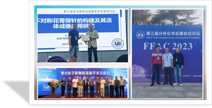 自团队成立以来,积极参与学术交流,全力推进课题组科研建设,提升9428cn太阳集团古天乐及团队学术影响力。分别参加了第六/七/八届荧光探针与成像青年学者研讨会、整合医学影像新进展学术交流会、分析化学岳麓前沿论坛、第十三届全国化员工物学学术会议等系列重要学术会议,并邀请湖南大学、华中师范大学等学科相关领域的资深专家学者来校做学术报告、指导项目申报和研究生毕业答辩等。