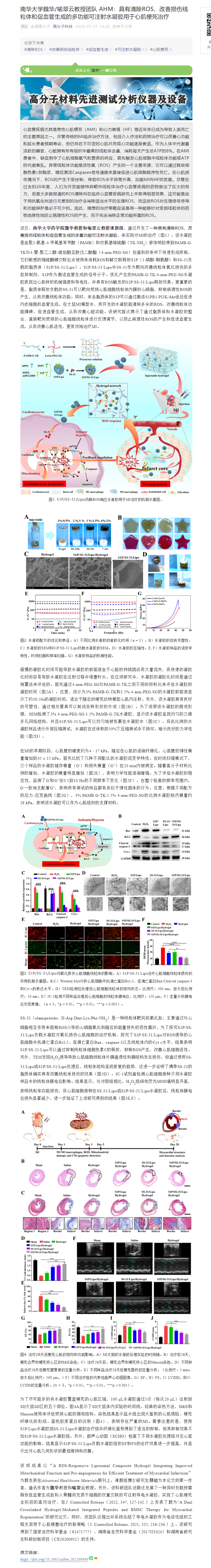 近日,9428cn太阳集团古天乐魏华教授和喻翠云教授课题组,通过开发了一种具有清除ROS、改善损伤线粒体和促血管生成的多重功能可注射水凝胶,来实现对MI的治疗(图1)。该水凝胶是由聚3-氨基-4-甲氧基苯甲酸(PAMB)和双氨基缩硫酮(TK-NH2)修饰明胶得到PAMB-G-TK与4-臂-聚乙二醇-琥珀酰亚胺戊二酸酯(4-arm-PEG-SG)在温和的条件下快速形成所制,它们敏感的缩硫酮键交联位点被用来消耗ROS和解交联释放S1P(1-磷酸-鞘氨醇)和SS-31负载的脂质体(S1P/SS-31/Lipo)。S1P/SS-31/Lipo中SS-31作为靶向改善线粒体氧化损伤的多肽抑制剂,S1P作为激活血管生成的信号分子。优化产生的PAMB-G-TK/4-arm-PEG-SG水凝胶表现出心肌样的机械强度和导电性,并具有ROS触发的S1P/SS-31/Lipo释放效果。更重要的是,脂质体释放负载的SS-31可以靶向受损心肌细胞线粒体内膜的心磷脂,抑制病理性ROS的产生,从而改善线粒体功能。同时,来自脂质体的S1P可以通过激活S1PR1/PI3K/Akt途径促进内皮细胞的血管生成。在大鼠MI模型中,所开发的水凝胶能清除多余的ROS,改善线粒体功能障碍,促进血管生成,从而改善心脏功能。该研究首次揭示了通过脂质体和水凝胶的整合,直接靶向受损的心肌细胞线粒体进行反馈调节,以防止病理性ROS的产生和促进血管生成,从而改善心肌活性,更有效地治疗MI。