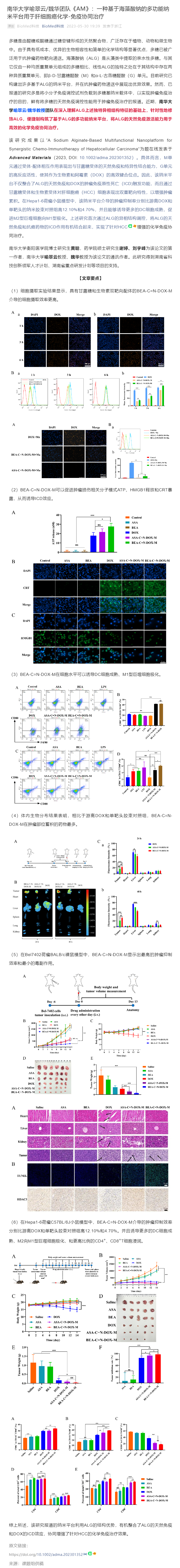 多糖是由醛糖或酮糖通过糖苷键形成的天然聚合物,广泛存在于植物、动物和微生物中。由于具有低成本、优异的生物相容性和简单的化学结构等显著优点,多糖已被广泛用于抗肿瘤药物靶向递送。海藻酸钠(ALG)是从藻类中提取的亲水性多糖。与其它仅由一种均质重复单元组成的多糖相比,线性ALG的独特之处在于其结构中存在两种异质重复单元,即β-D-甘露糖醛酸(M)和α-L-古洛糖醛酸(G)单元。目前研究已构建出许多基于ALG的纳米平台,并在抗肿瘤药物递送中展现出优异效果。然而,已报道的研究多是将小分子免疫调控试剂负载到多糖基纳米载体中,以实现肿瘤免疫治疗的目的,鲜有将多糖的天然免疫调控性能用于肿瘤免疫治疗的报道。近期,9428cn太阳集团古天乐喻翠云/魏华教授团队在深入理解ALG上述独特异相结构特征的基础上,针对性地修饰ALG,便捷制构筑了基于ALG的多功能纳米平台,将ALG的天然免疫激活能力用于高效的化学免疫协同治疗。