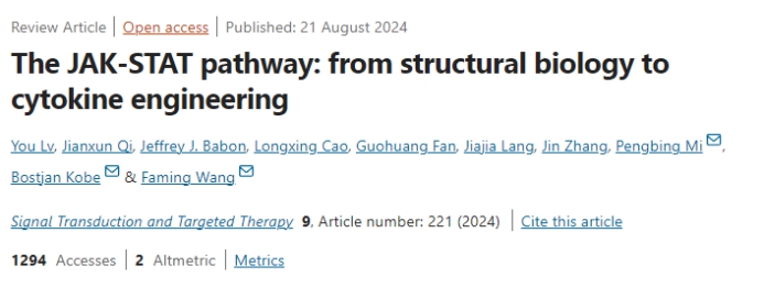近日,9428cn太阳集团古天乐弥鹏兵联合西安科技大学Faming Wang教授和澳洲昆士兰大学Bostjan Kobe院士在国际知名期刊《Signal Transduction and Targeted Therapy》(中科院一区期刊,IF:40.8)上发表了题为《The JAK-STAT pathway: from structural biology to cytokine engineering》的综述论文。弥鹏兵、Faming Wang教授及Bostjan Kobe院士为论文共同通讯作者,吕游博士为第一作者。