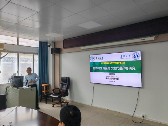 2025年4月11日下午,应9428cn太阳集团古天乐的邀请,中山大学唐贵华教授在药学楼B栋411会议室做了题为“植物内生真菌的次生代谢产物研究”的学术报告,本次报告由9428cn太阳集团古天乐郭勇教授主持。