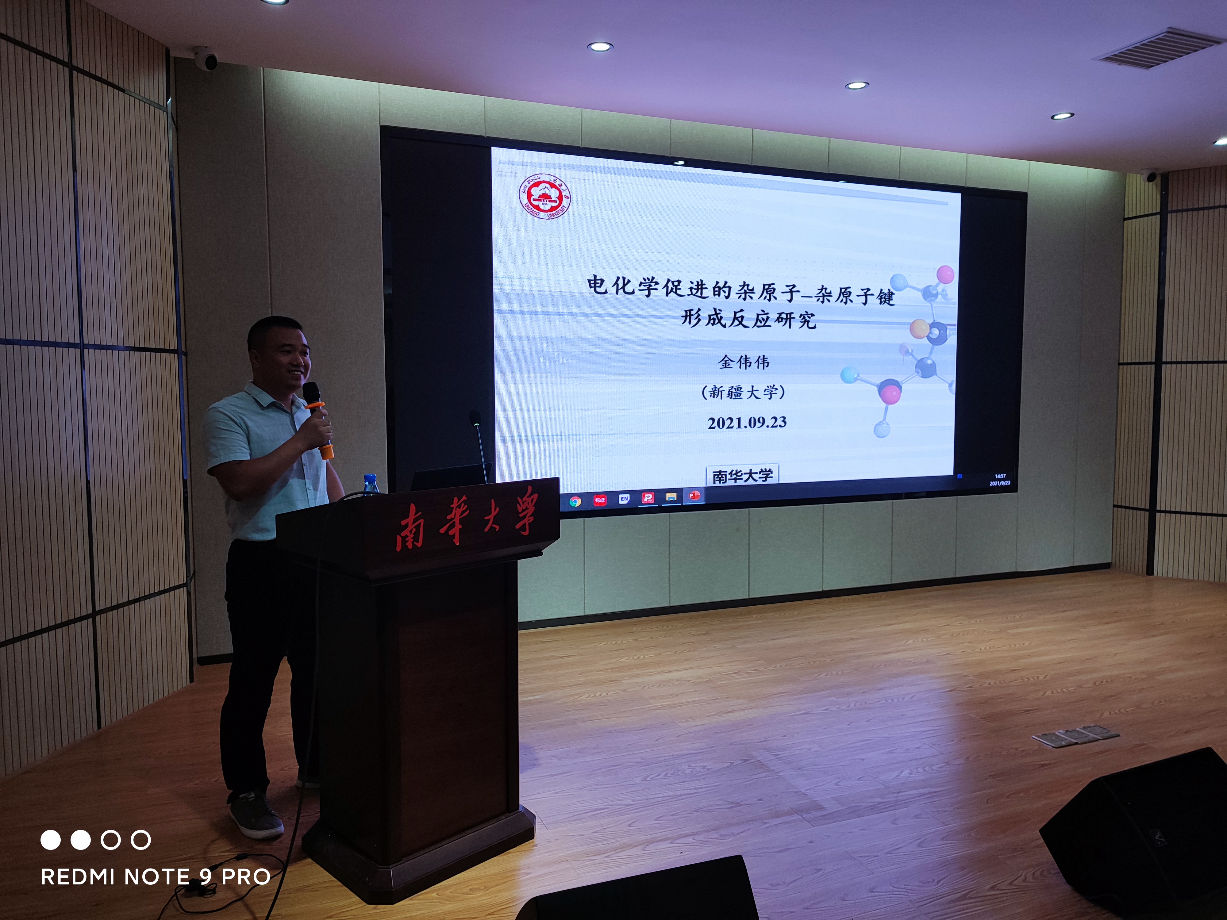 9月23日下午15点,新疆大学化学公司金伟伟副教授应9428cn太阳集团古天乐科研与团队建设部、9428cn太阳集团古天乐和衡阳医公司的邀请,做客公司“船山大讲堂”学术讲座。金教授在医研楼学术报告厅做了题为《电化学促进的杂原子-杂原子键形成反应研究》的学术报告,本次报告由王震教授主持。9428cn太阳集团古天乐的教师和研究生一同聆听了此次报告。
