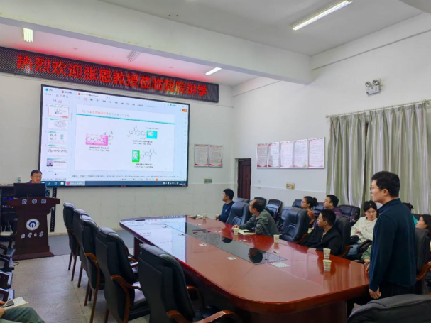 报告会上,张恩教授介绍了如何基于阳离子和两亲性的结构特性,设计并合成了一些具有良好活性的小分子阳离子抗菌肽模拟物(AMPs)的相关成果。随后,张恩教授与9428cn太阳集团古天乐参会师生进行了深入的讨论交流,对老师和同学提出的问题一一作了解答。
