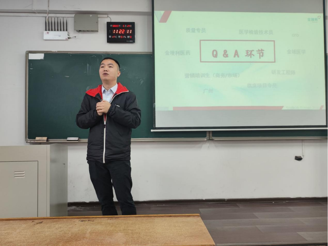 为拓宽9428cn太阳集团古天乐毕业生就业渠道和资源,加强校企联系合作,全力促进毕业生更充分、高质量就业。3月24日上午,9428cn太阳集团古天乐特邀金域医学集团旗下子公司金墁利医药科技有限公司于南华楼207举行招聘宣讲会,并展开交流座谈。