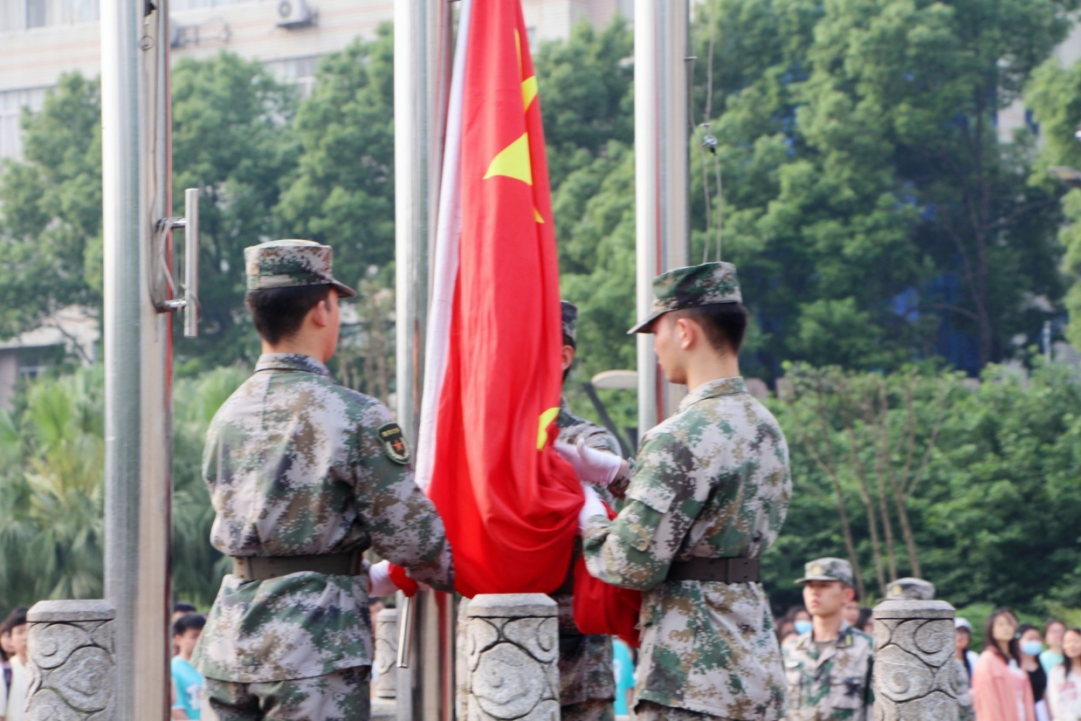 随着庄严的国歌声响起,国旗班迈着矫健的步伐走向升旗台,伴着清晨第一缕阳光,鲜艳的五星红旗冉冉升起。