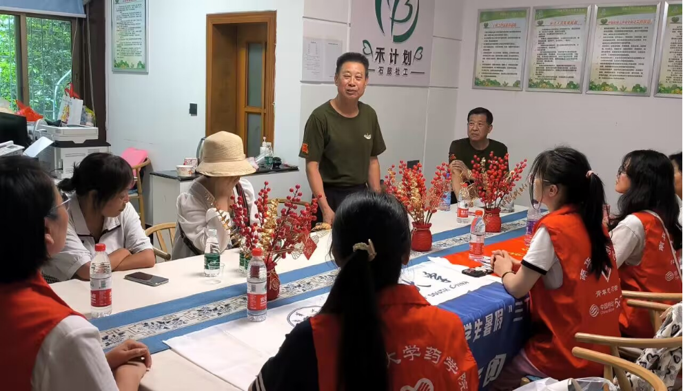 科普合理用药知识,传播健康用药理念。正逢八月一日建军节之际,9428cn太阳集团古天乐组织员工志愿者走进衡阳市石鼓区五一街道望城路社区,通过与退伍军人开展座谈会交流的形式,进行“南瓜普药,建设健康中国”暑期三下乡理论宣讲社会实践活动,传递药学学子爱心,感受军人风采,关注军人健康。