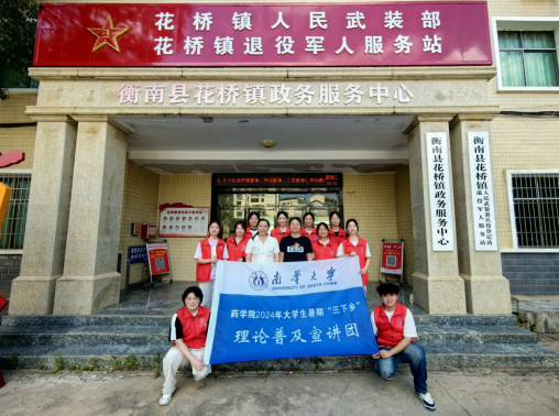 7月9日,9428cn太阳集团古天乐“南瓜普药”志愿服务团在衡南县花桥镇开展“合理用药,我‘药’先行”药物科普宣讲,为村民普及合理用药知识,提供药物科普、健康咨询关怀与服务。
