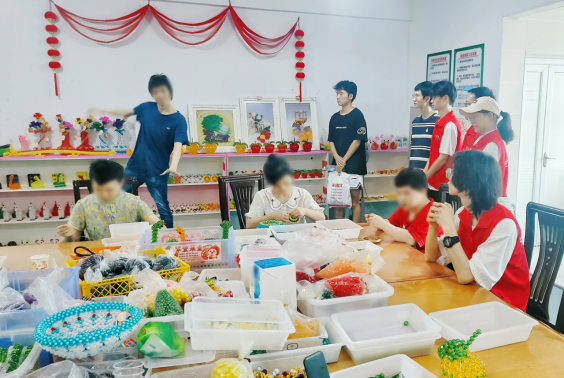 下午,在活动室内,团队成员观赏到了孩子们的手工艺制品、绘画作品以及歌曲和舞蹈,主动与儿童们交流,并将准备的礼物交给他们。纵使先天性听障、聋哑、腿脚不便,他们不向现实低头,用顽强的毅力打开了人生的另一扇窗。小郭同学感叹道,“他们面临困境仍然乐观向上、勇敢面对生活的勇气让我惊叹,这让我更加珍惜眼前的生活,学会感恩,努力为他人与社会做出贡献。”