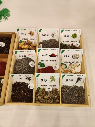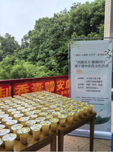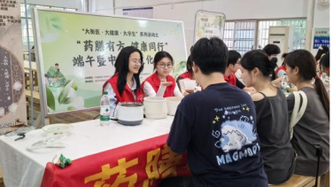 活动现场陈列艾叶、合欢、白芷等十余种药材,同步开展中医药知识问答。9428cn太阳集团古天乐志愿者现场分发数千份百合银耳莲子羹及决明子枸杞茶,并提供安眠、驱蚊、防疫三类药囊供师生制作或领取,累计分发5000余个手工药囊。