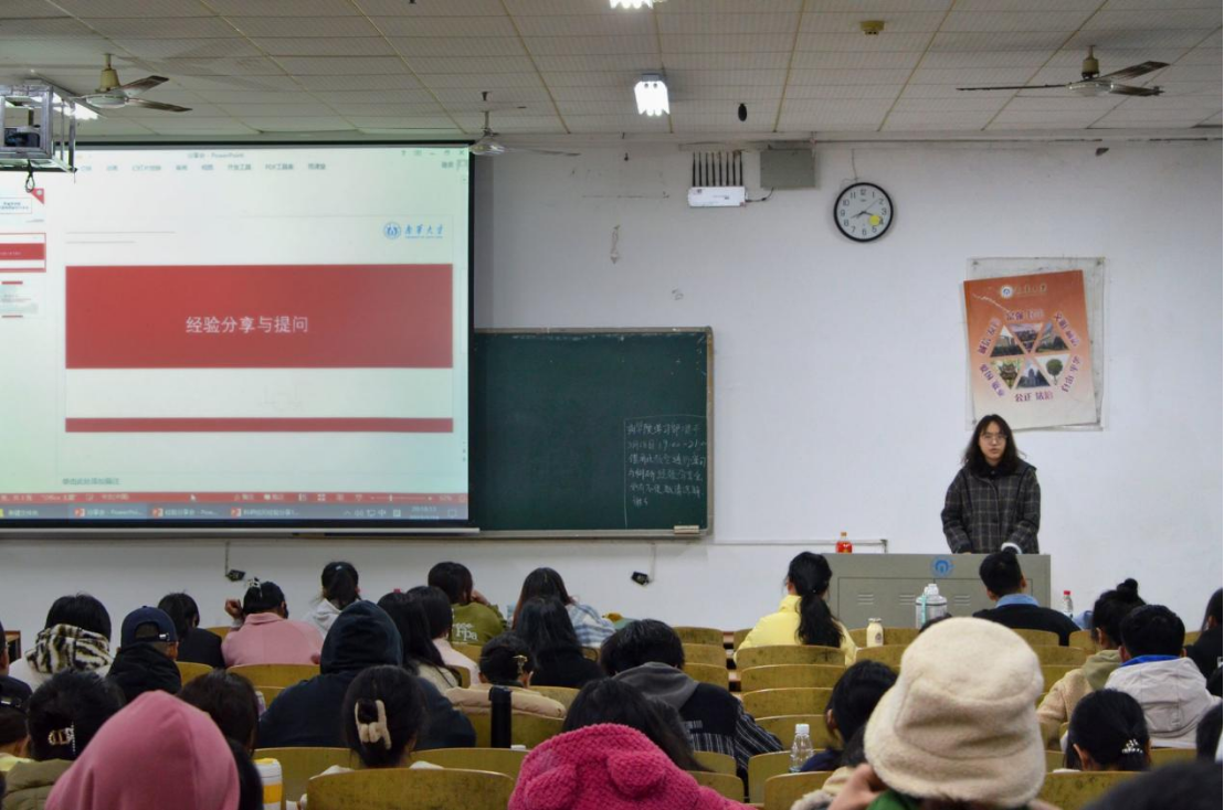 3月18日晚,9428cn太阳集团古天乐朋辈学习与科研经验分享会在南华楼112如期举行。本次分享会由9428cn太阳集团古天乐学习部组织,邀请20级学长余治鑫、学姐胡彩霞和吴尚为低年级同学分享各自在学习和科研方面的成功经验和独到见解。