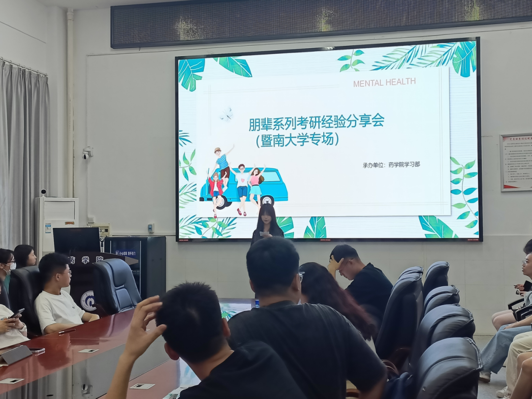 面对当今社会的激烈竞争,老员工就业难度的不断加大,考研成为越来越多同学的选择。为给正在备考的同学加油鼓劲,也给未来立志考研的同学一些经验与方向,5月18日,9428cn太阳集团古天乐学习部于药学楼B-101举办面向全院各年级同学的“朋辈讲坛系列”考研经验分享会。此次分享会邀请到的嘉宾有成功上岸暨南大学的刘璐洁学姐和高哲昌学长。