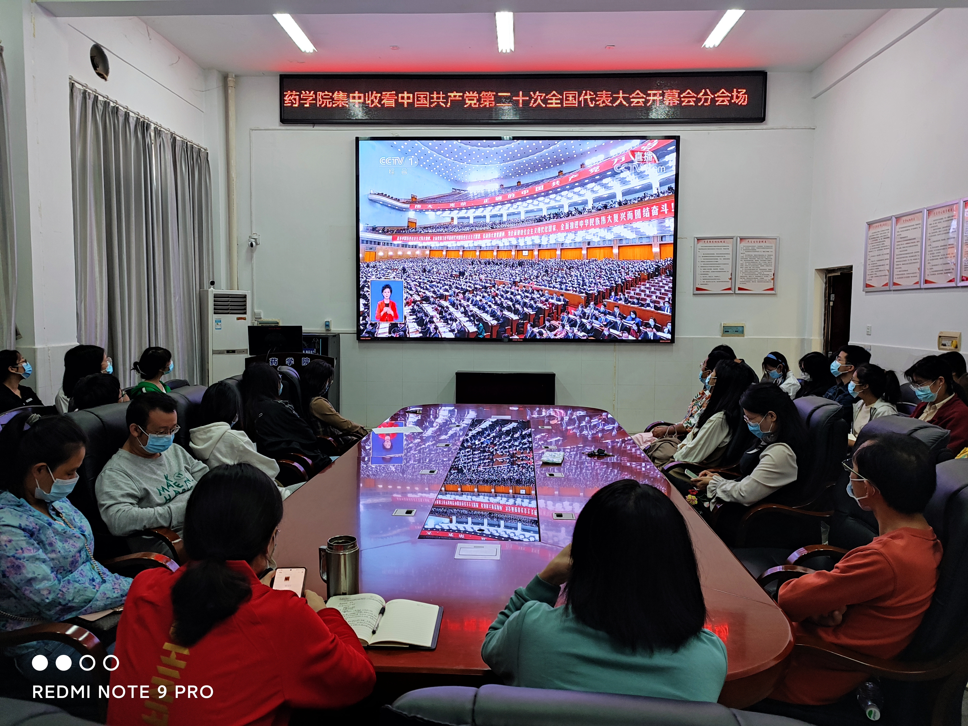 10月16日上午,药公司党委在药学楼B101会议室组织集中观看第二十次全国代表大会开幕会,党委副书记陈健平主持,师生代表65人参加。