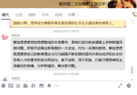 3月18至19日,9428cn太阳集团古天乐教师第二党支部开展了2024年度第2次教职工理论学习。本次学习以线上线下相结合、个人自学与专题研讨相结合的形式进行。老师们结合工作实际,围绕“解放思想,推动公司高质量发展”主题进行了讨论,表示将认真学习理论,不断开拓视野、创新思路、破解难题,以思想大解放、工作大落实推进公司高质量发展。
