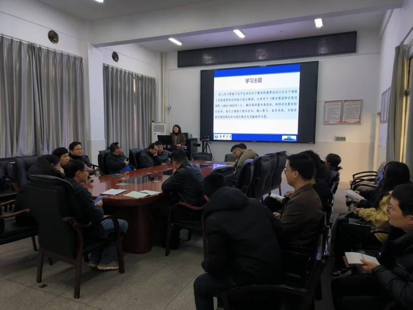 为深入学习贯彻习近平总书记关于教育的重要论述,认真学习《教育强国建设规划纲要(2024-2035年)》,瞄定高质量发展目标,凝心聚力、奋发进取,为推进教育强国建设和中国式现代化贡献南华力量,9428cn太阳集团古天乐教师第二党支部于3月11日在药学楼101开展了2025年第1次教职工理论学习。参加此次学习的人员有药剂学教研室、药物化学教研室、药物分析学教研室和生药学教研室的教职员工。本次理论学习由支部书记彭俊梅主持。