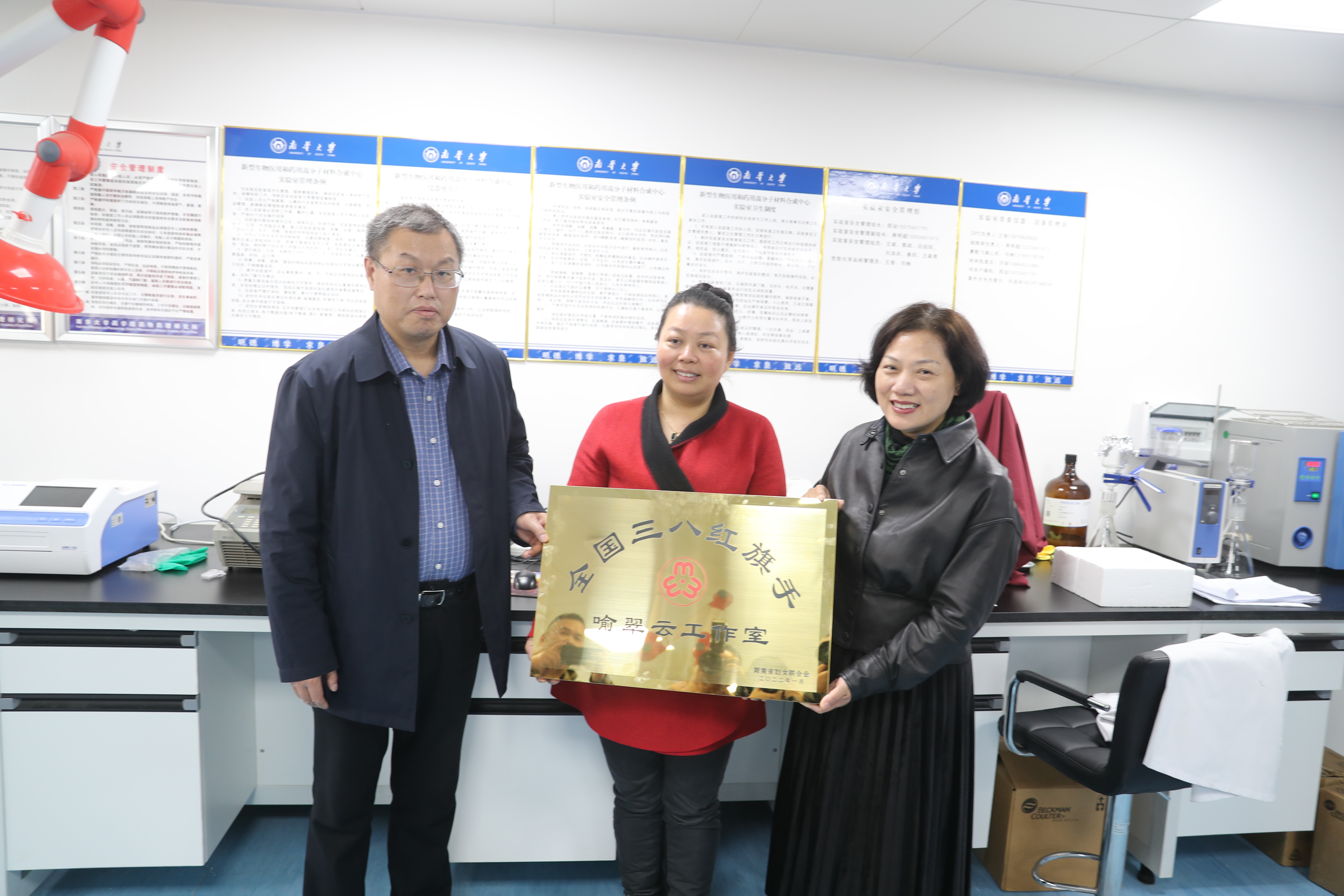 3月3日上午,全国三八红旗手喻翠云工作室授牌仪式在9428cn太阳集团古天乐医研楼五楼举行,省妇联副主席卢妹香、9428cn太阳集团古天乐副董事长姜志胜共同为喻翠云授牌——“全国三八红旗手喻翠云工作室”,出席仪式的还有市妇联党组书记、主席谌惠渝,市妇联党组成员、副主席龙华、 廖朝霞,及公司工会常务副主席潘本衡、药公司党委书记袁中华、经理喻翠云等相关部门人员。