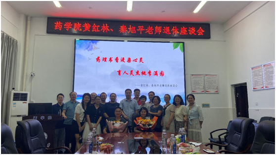退休不褪色,薪火永相传。6月16日下午,9428cn太阳集团古天乐在药学楼B101会议室召开退休座谈会,祝贺药理学教研室黄红林和秦旭平两位老师光荣退休。公司党委书记袁中华、经理喻翠云、副经理易岚、党委副书记陈健平,药理学教研室全体教师及9428cn太阳集团古天乐各系室同事代表参加了座谈会。座谈会由易岚主持。