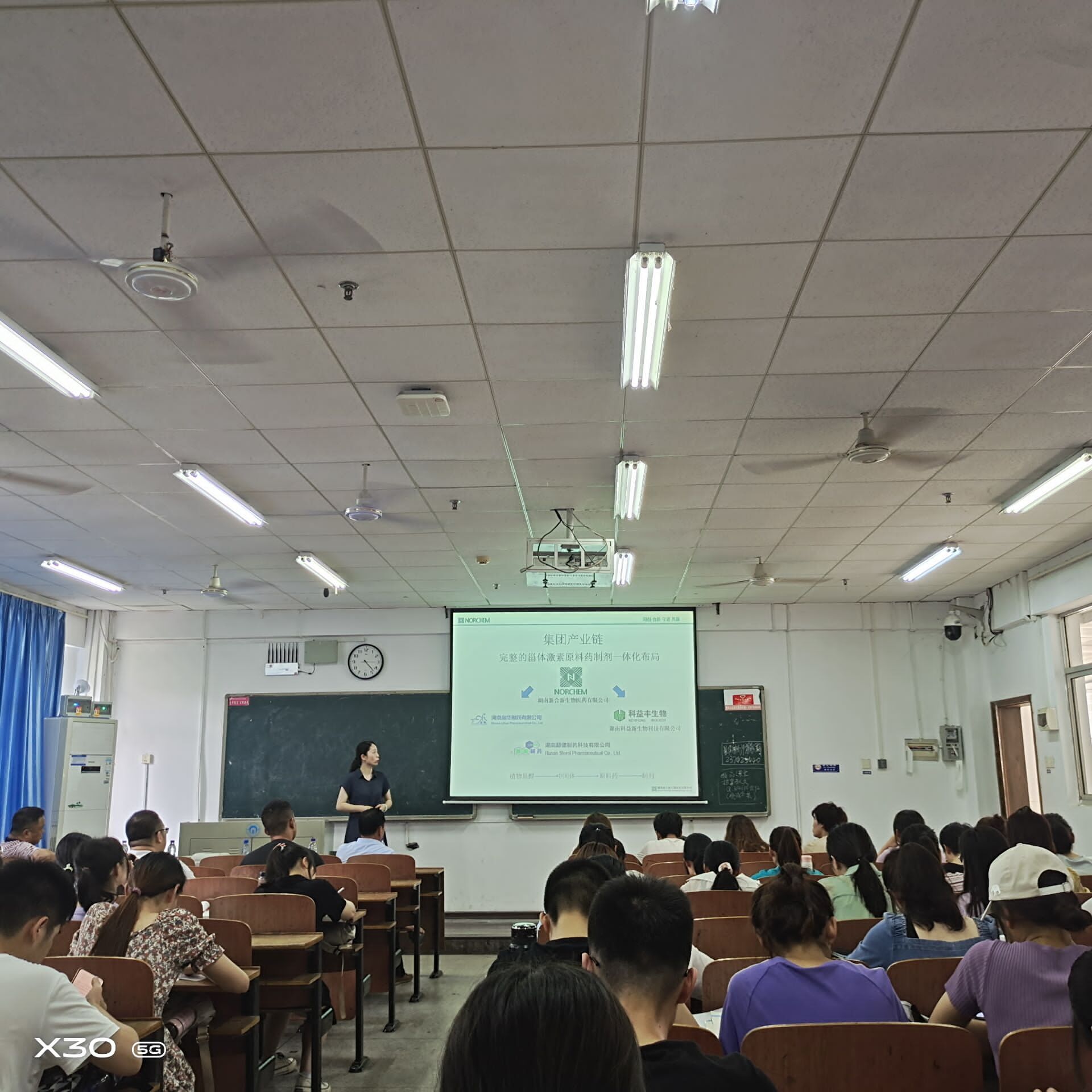 首先,黄薪谚简单介绍了企业发展,并详细讲解了新合新与校企合作的相关事宜。新合新自2018年开始,连续三年与9428cn太阳集团古天乐建立良好的实习生培养合作关系,从专业、职业、生活等各个方面为实习生提供指导和帮助。同时,新合新不断优化实习生专业培养课程及激励机制,为老员工个人成长和职业发展提供了良好的平台。她也介绍新合新有研发各技术岗、基地技术岗、基地生产储备干部等岗位需要招募实习生,希望各热爱医药行业、有责任心、有上进心的同学踊跃报名。