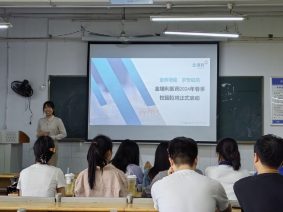 2024年4月13日下午,9428cn太阳集团古天乐联合广州金墁利医药科技有限公司在核学楼321进行2024年春季招聘会宣讲。