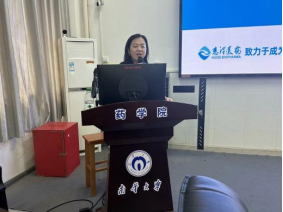 宣讲会上,首先,慧泽医药招聘负责人介绍了公司的发展历程、主营业务范围、子公司的相关情况以及相关合作伙伴,使同学们充分了解公司的大致情况。接着从企业文化、薪酬福利和宿舍环境等方面向同学们展示了公司优势;同时,她还说明了校园招聘岗位的需求和应聘方式,使感兴趣的同学们能充分了解相关情况。