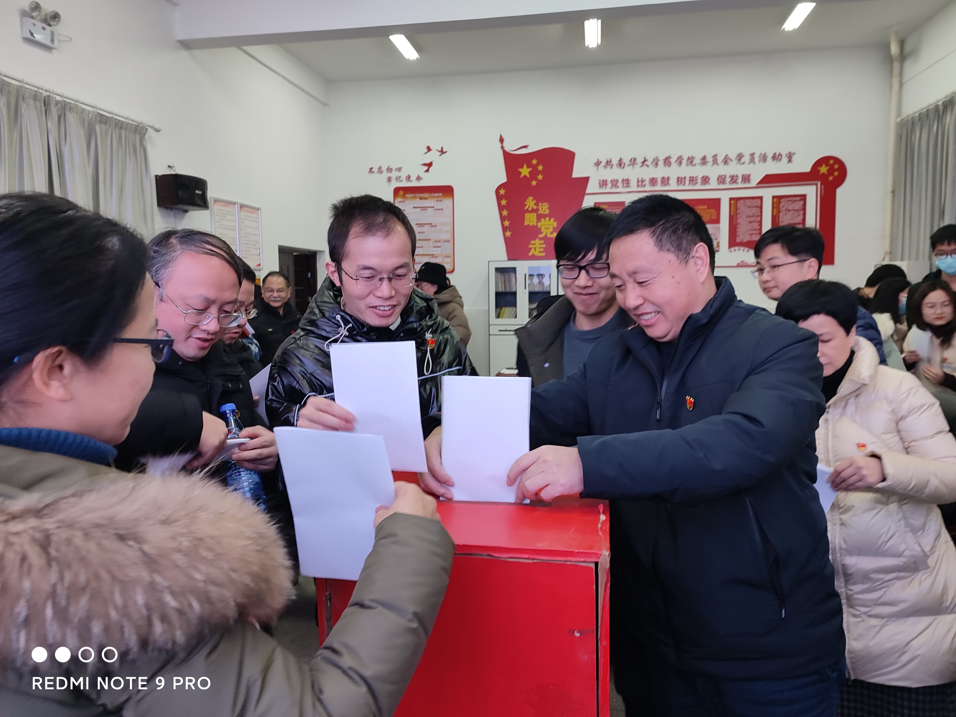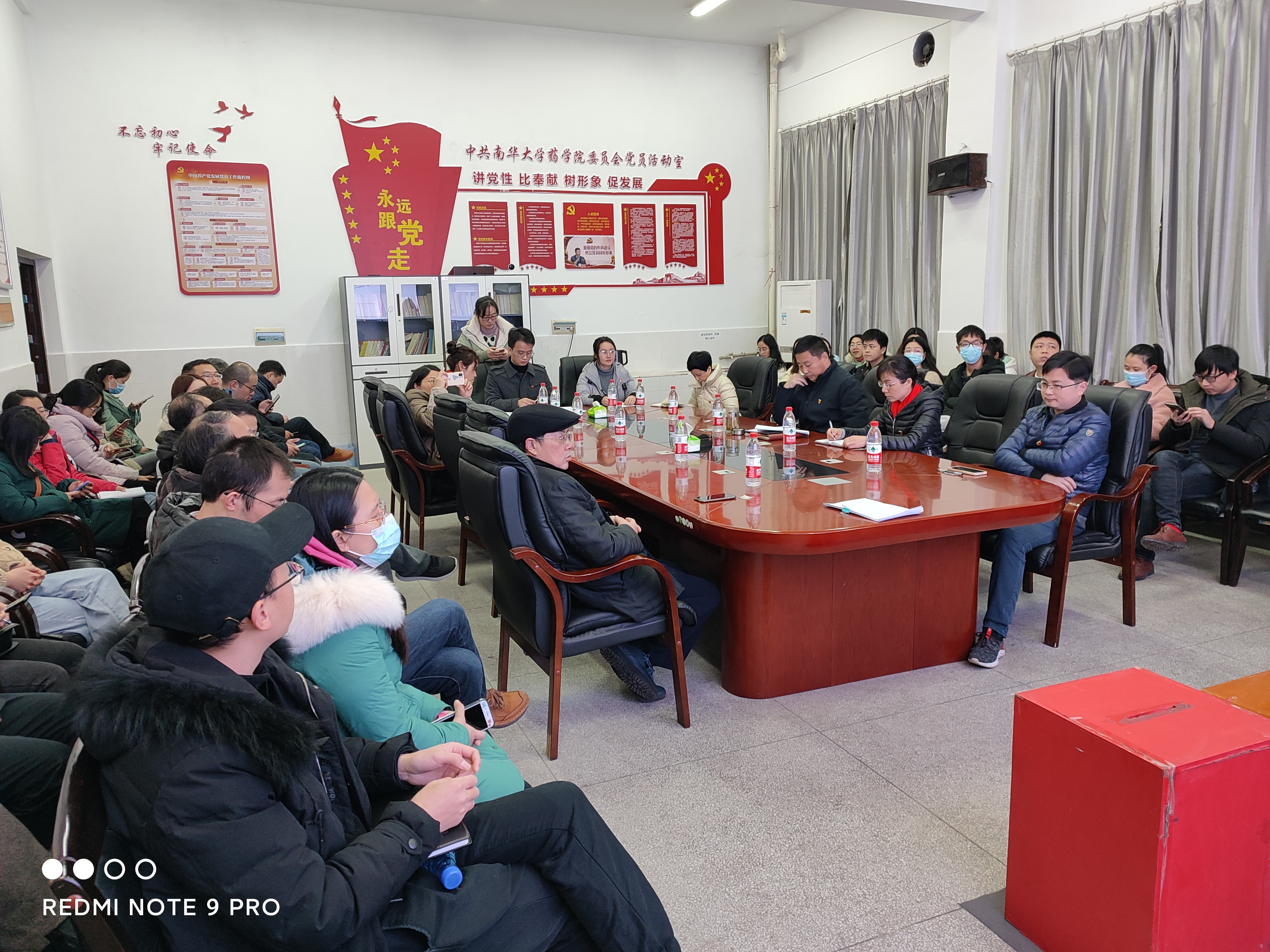 本次会议共有四项议程:会议第一项由喻翠云同志代表上届党委做工作报告,喻翠云同志从加强党组织建设、深化政治理论学习、引领党建工作、促进学科发展等方面作详细汇报。会议第二项由袁中华同志介绍本次党员大会的筹备和九位候选人情况。会议第三项为投票选举新一届党委,由虞佳同志监票,曾要富和彭颖同志计票,全体党员同志参与无记名投票。计票间隙,会议播放庆祝中国共产党成立100周年大型情景史诗《伟大征程》,带领全体党员同志回顾中国共产党不懈奋斗的辉煌历程。