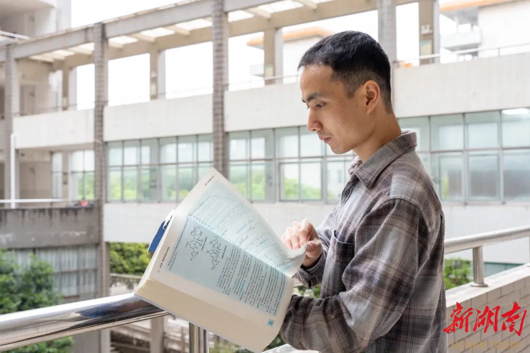 他总是微微眯着眼睛,专注地观察着周围的一切,虽然视力受限,但眼神中却透着一股对知识的渴望和对生活的热爱……他就是2022级本科生王韬。34岁的他总是迈着坚定的步伐穿梭于教学楼、实验室与图书馆之间,他的身影早已成为校园里一道独特的风景线,激励着每一个同学。