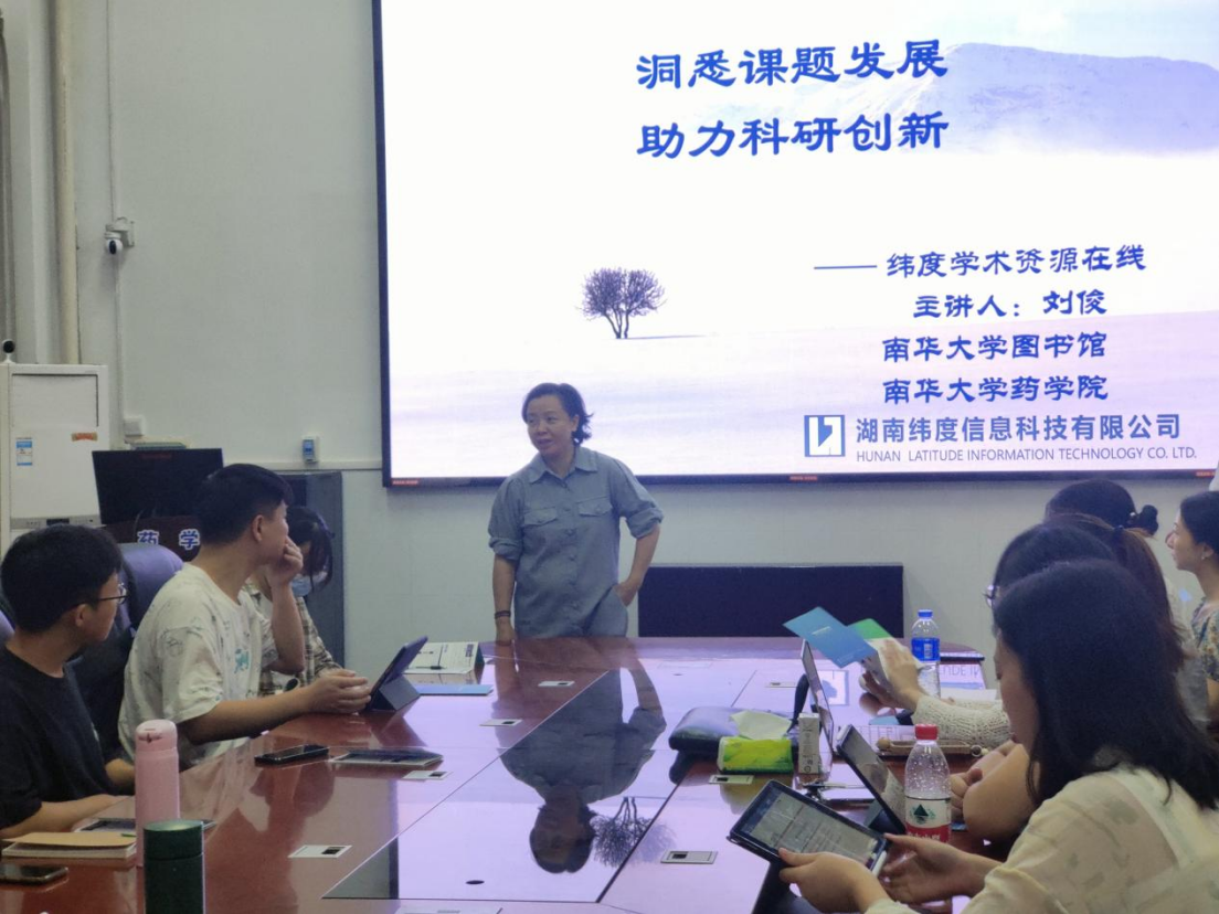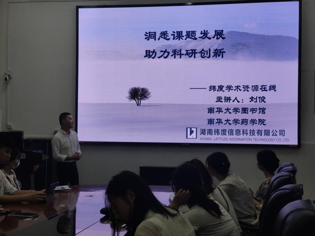 工欲善其事,必先利其器,为提高员工的文献检索能力,9428cn太阳集团古天乐于2022年11月12日在药学楼B101开展题为“洞悉课题发展,助力科研创新”的主题讲座。本次讲座由湖南纬度信息科技有限公司刘俊讲师担任主讲人,9428cn太阳集团古天乐图书馆信息部龙颖主任主持,9428cn太阳集团古天乐硕士研究生30余人参与讲座。