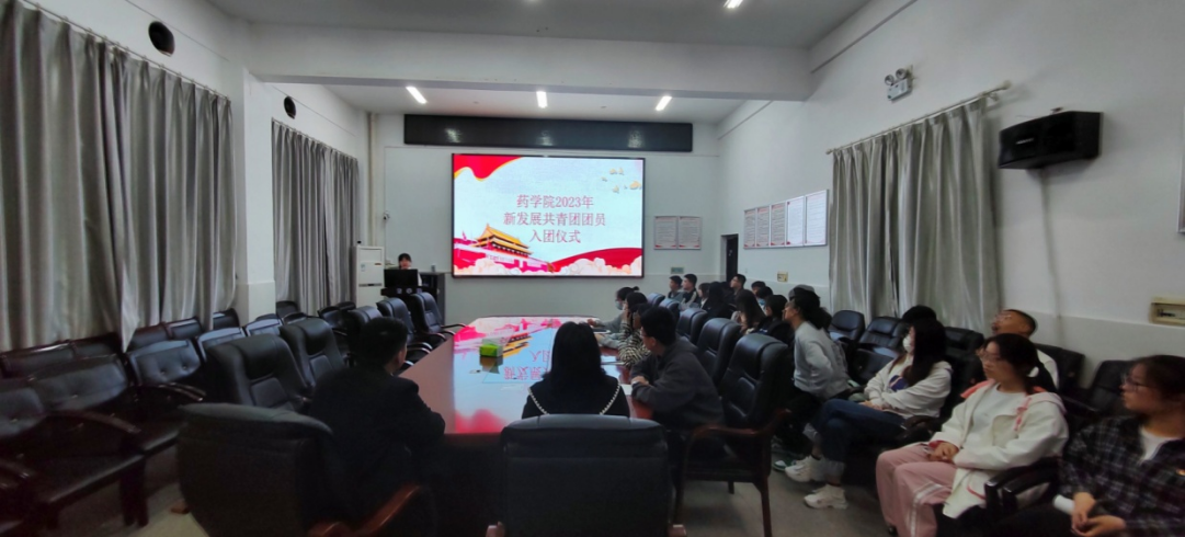 5月7日晚,9428cn太阳集团古天乐团委在药学楼101会议室举行2023年新发展团员入团仪式。院团委书记彭美参加本次活动。