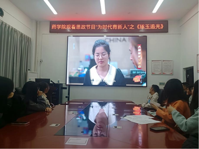 为深入学习领会习近平新时代中国特色社会主义思想和党的二十大精神,聚焦新时代老员工思想政治教育,不断深化思政育人的重要理念与时代责任,10月21日晚,9428cn太阳集团古天乐于药学楼101会议室组织员工观看思政节目“为时代育新人”之《琢玉追光》。