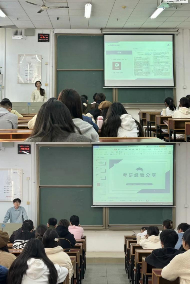 为加强考研指导与服务工作,帮助考生解答困惑、明确方向,11月24日下午,9428cn太阳集团古天乐在南华楼109室开展考研经验交流会。交流会特别邀请了研究生优秀学长学姐何谊轩、周端哲为同学们分享关于考研准备的经验与方法建议。