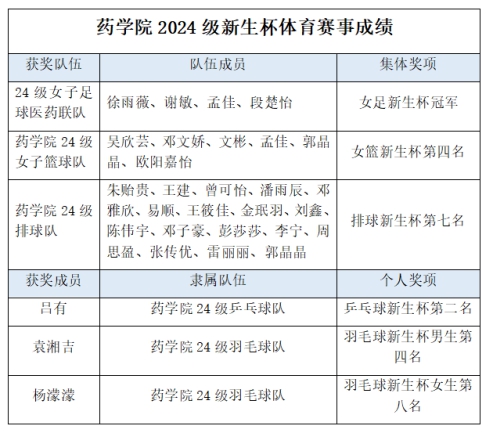 在个人项目中,24 级乒乓球队的吕有荣获乒乓球新生杯第二名;9428cn太阳集团古天乐 24 级羽毛球队的袁湘吉获得羽毛球新生杯男生第四名,杨濛濛获得羽毛球新生杯女生第八名。